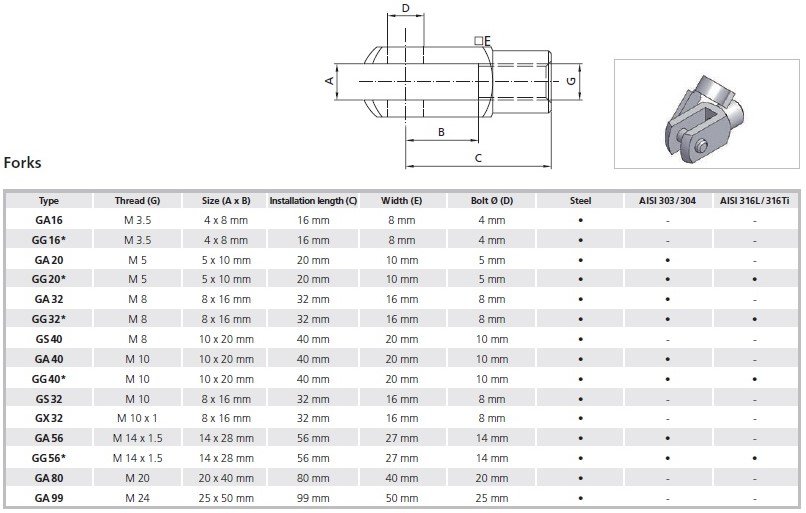 Cap tip furca tija arc cu gaz INOX VA4