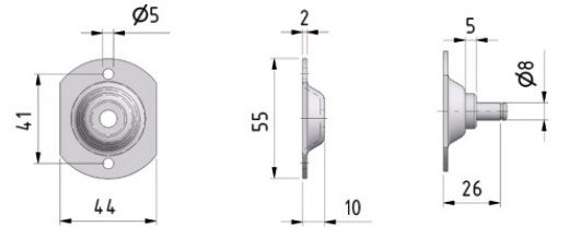 Prindere placa cu tija, tip BA 20, Ø8mm, INOX VA4, W.1.14404 / AISI 316