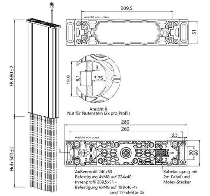 Coloana telescopica de ridicare HEXALIFT V2-O fara suport de prindere
