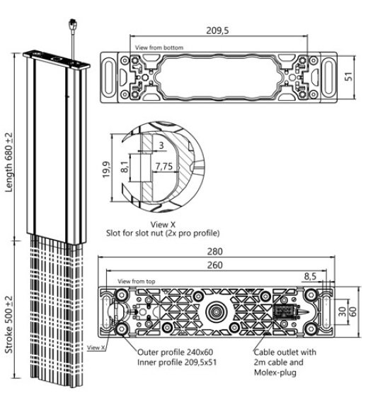 • Cursa maxima 680 mm