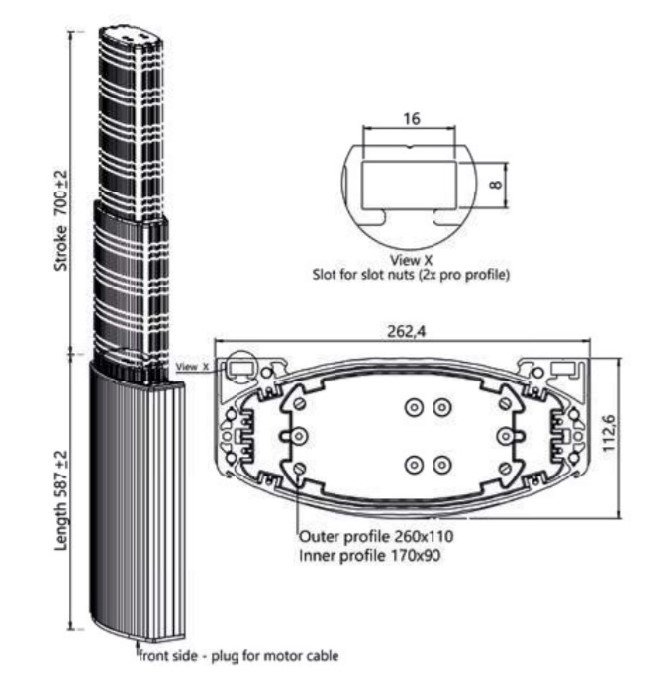 Coloana telescopica de ridicare tripla VISOLIFT VA asimetric