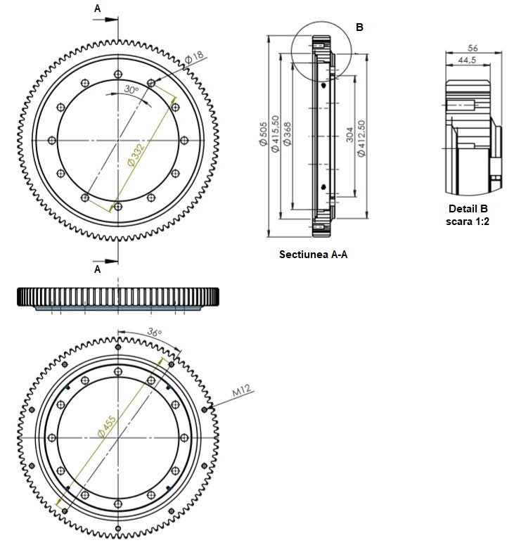 Coroana rotativa 360° cu roata dintata exterioara Ø505mm