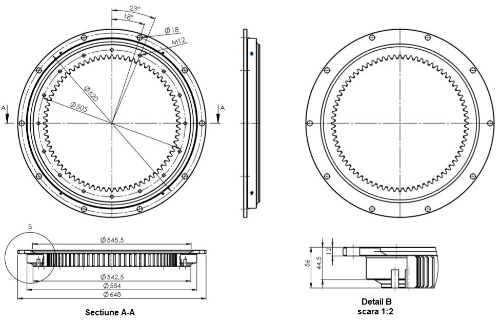 Coroana rotativa 360° cu roata dintata interioara Ø518mm