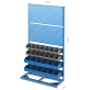 Stand fix depozitare cu 26 cutii plastic pe 2 rafturi si 2 panouri perforate 1000x400x1800mm
