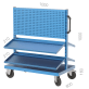 Stand mobil depozitare cu 4 rafturi inclinate si 4 panouri perforate 1000x600x1160mm