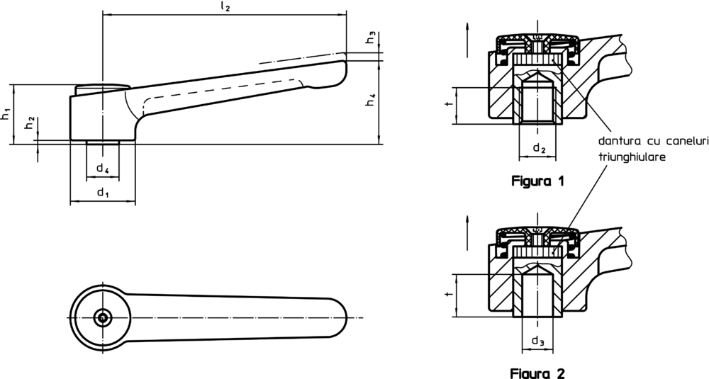 Prin ridicarea pârghiei dantura se decuplează. Pârghia poate fi poziţionată la nivelul şirurilor de dinţi. La eliberarea pârghiei, dantura se cuplează automat.