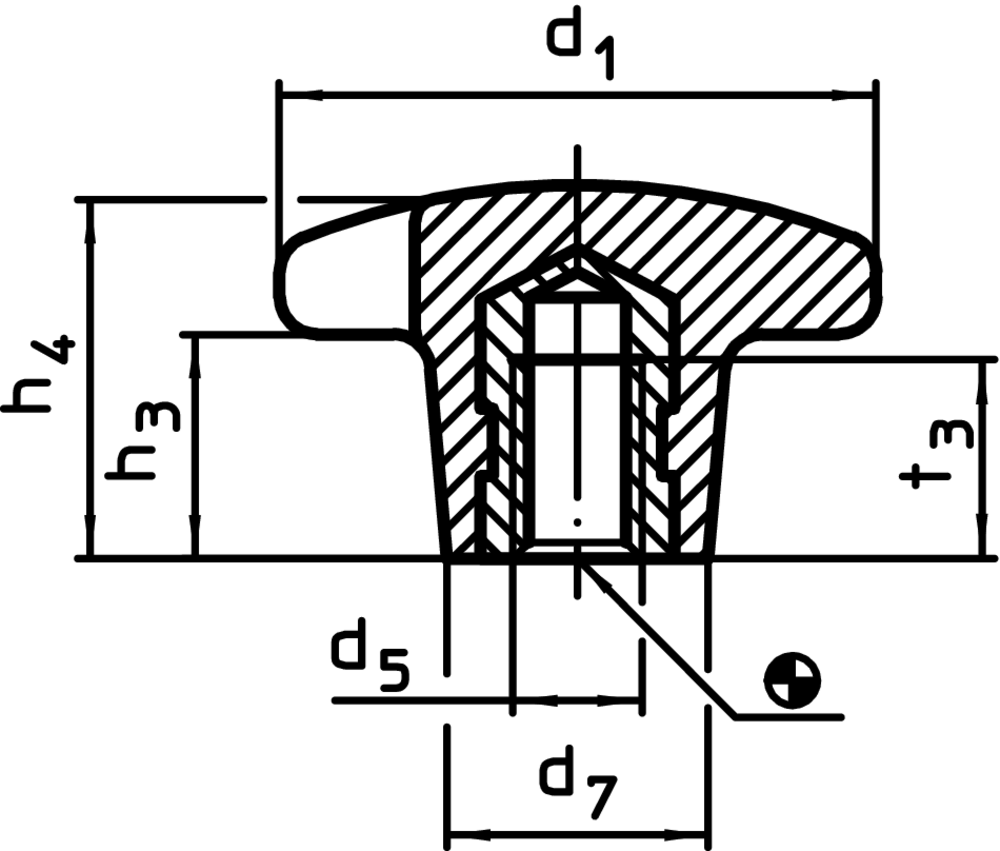 Mânere palmiforme, DIN 6335 material plastic/cu bucşă filetată, forma K | d1=25 mm / oțel inoxidabil | 24640.1225