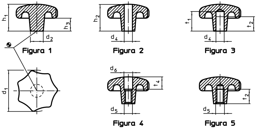 Mânere tip stea, DIN 6336 fontă/cu gaură înfundată, netedă, forma C | d1=63 mm | 24650.0263