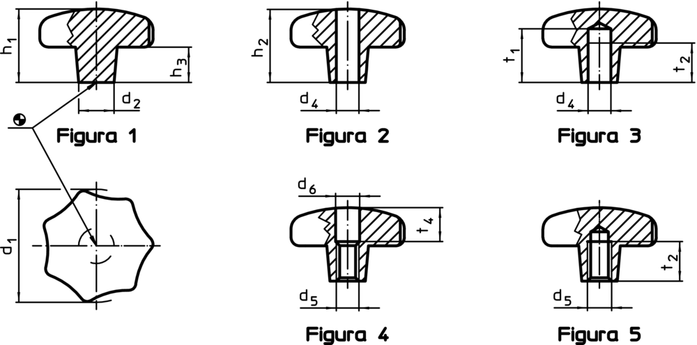 Mânere tip stea, DIN 6336 Oţel inoxidabil turnat/cu gaură înfundată filetată, forma E | d1=40 mm | 24661.0440