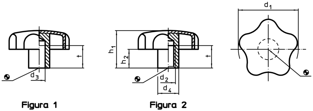 Mânere tip stea, oțel inoxidabil/cu gaură înfundată filetată | d1=60 mm / d2=M12 | 24690.0460