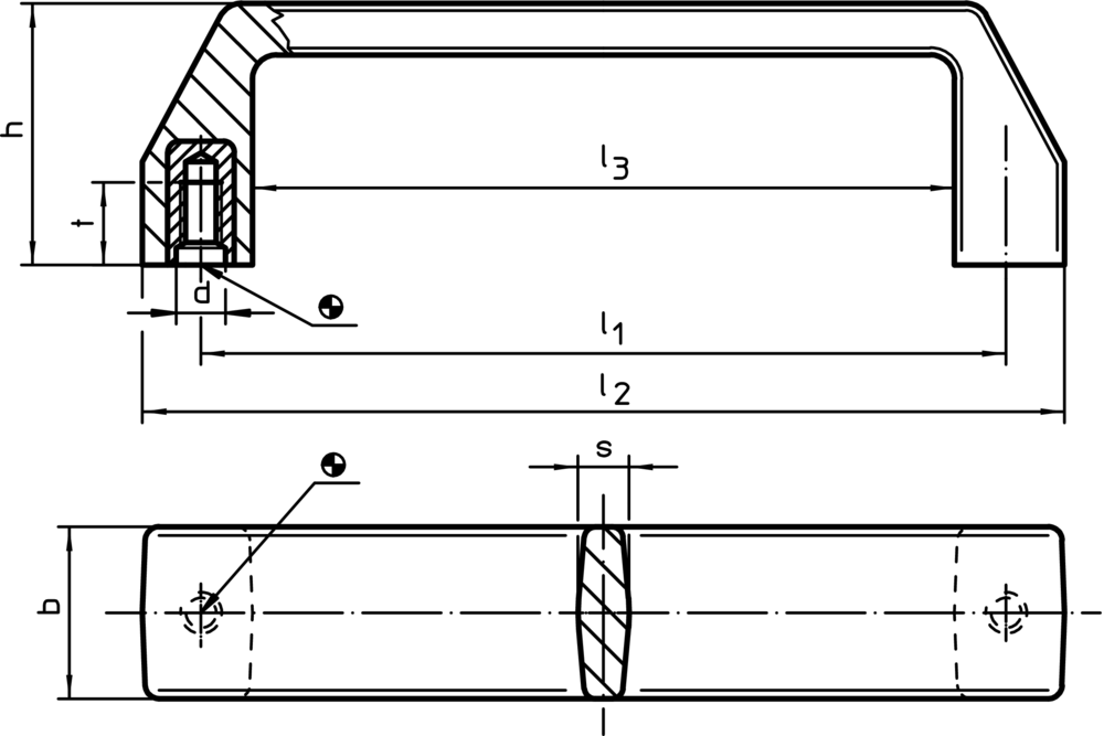 Mânere tip U, plastic/negru | l1=117 mm / d=M6 / b=25 mm | 24320.0220