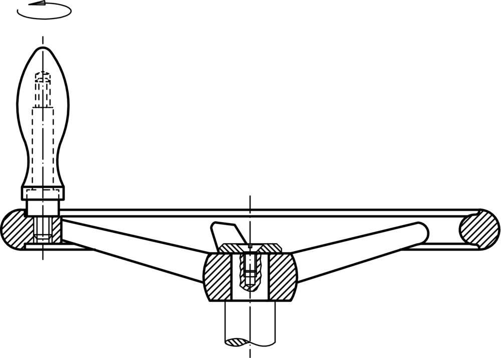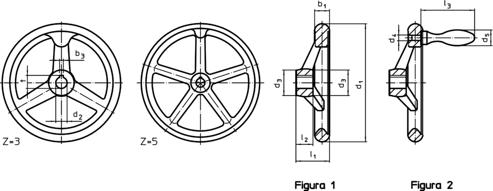 Roţi de manevră, DIN 950 fontă/fără canal, cu manetă fixa EH 24450., asamblată, forma B-F/G (anterior F 4) | d1=315 mm / d2=30 mm | 24580.0446