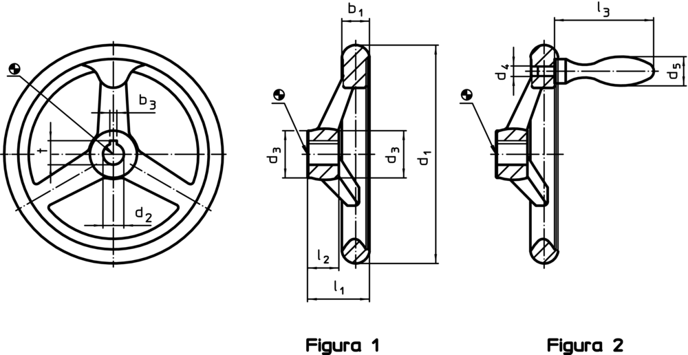 Roţi de manevră, similar DIN 950, oțel inoxidabil/fără canal, cu manetă fixa EH 24450., asamblată, forma B-F/G (anterior F 4) | d1=140 mm | 24591.0415