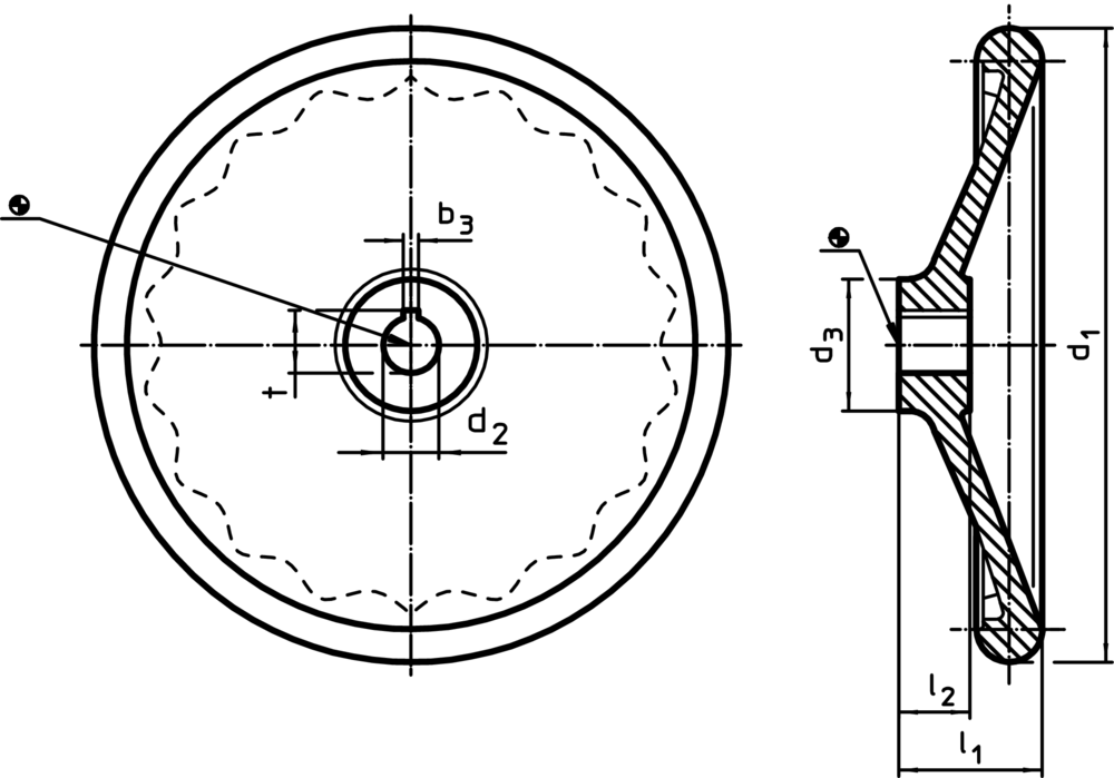 Roţi de manevră tip disc, DIN 3670/fără bucşă oţel, forma N, cu canal | d1=200 mm / d2=18 mm | 24570.0330