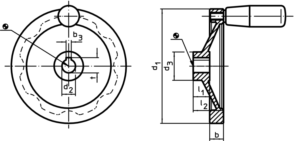 Roţi de manevră tip disc, metal uşor/cu nut, cu mâner cilindric EH 24530. | d1=140 mm / d2=16 mm | 24600.0316