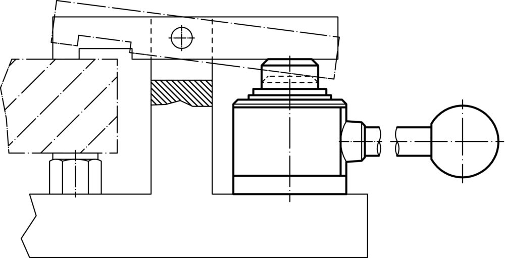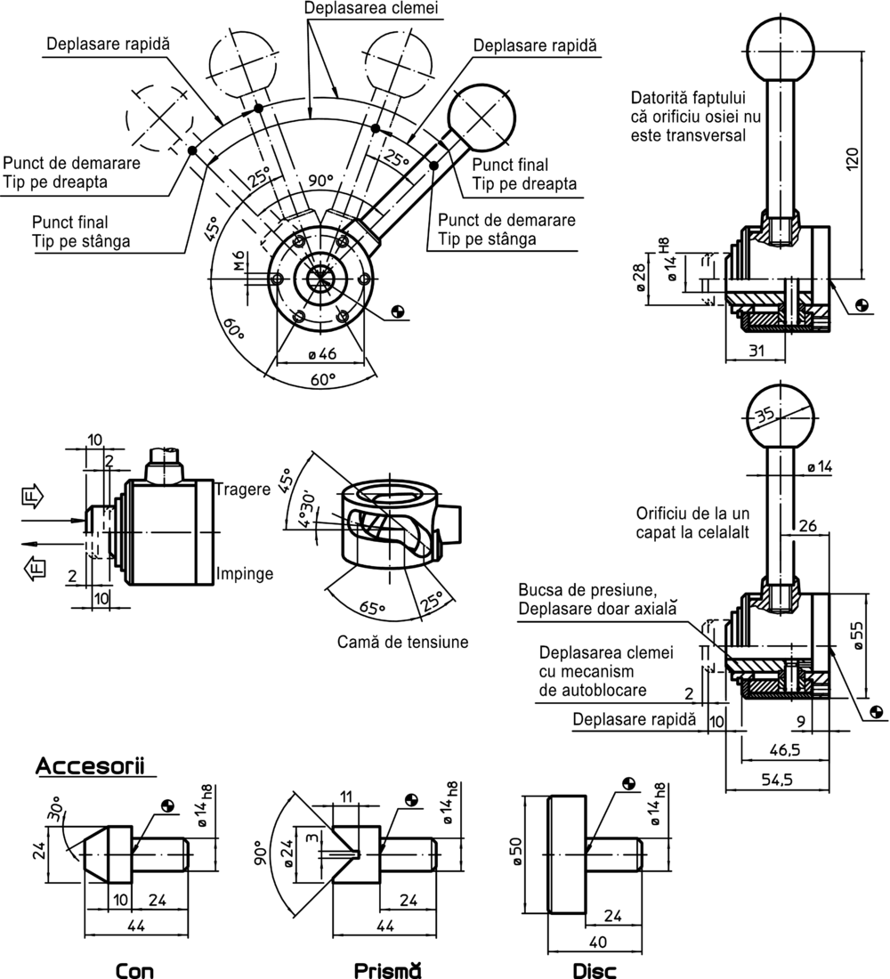 Element de prindere compact pentru tragere și împingere cu ajutorul căruia se poate transforma tensiunea de prindere prin rotirea manșonului de presiune. Cursa este de 10 mm. În cazul cursei scurte de 2 mm, autoblocarea apare în orice poziție. Forța maximă de prindere permisă este de 4,9 kN.
