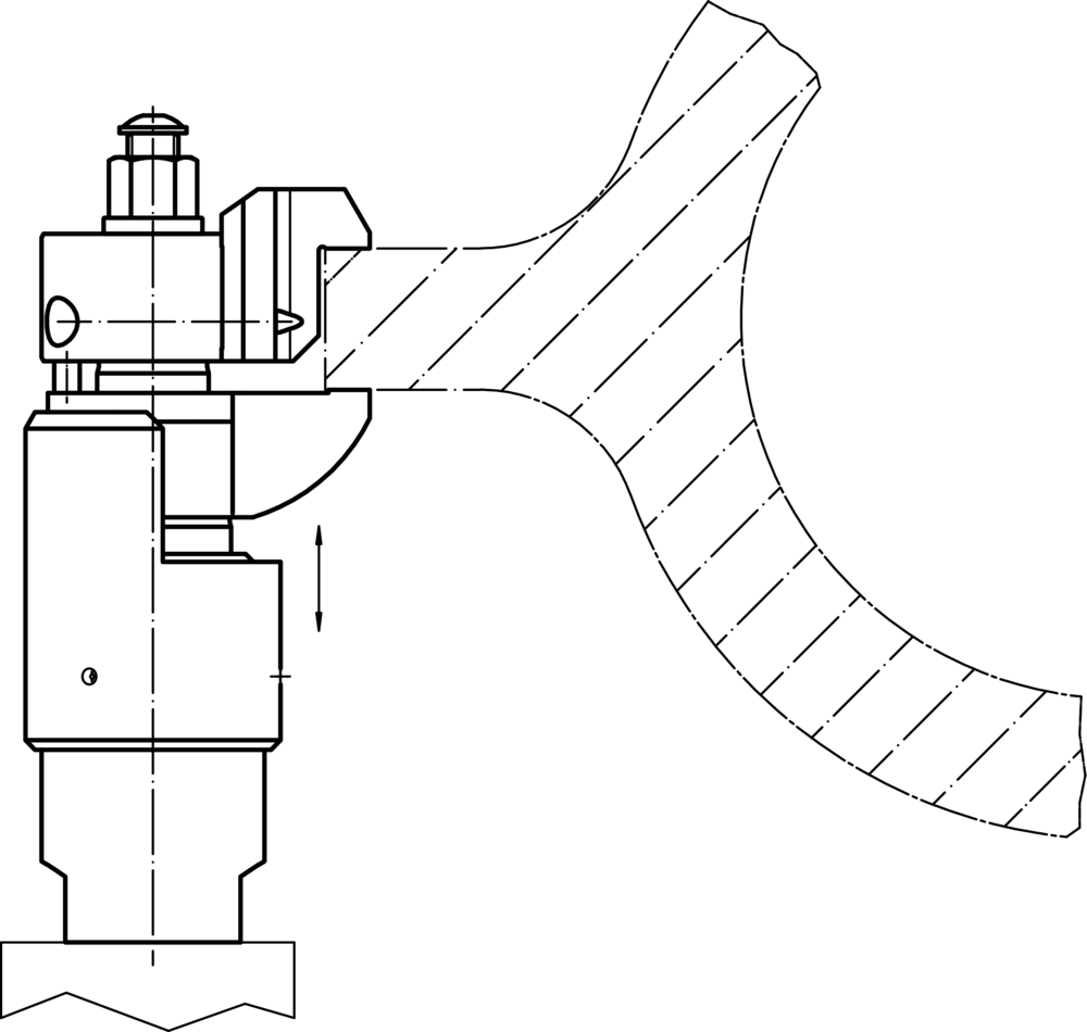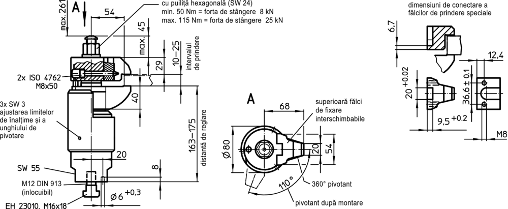 - Strângeți clema cu ajutorul piuliței (SW 24) la o forța min. de 50 Nm și max. de 115 Nm. În procesul de prindere, piesa este prinsă și sprijinită simultan.