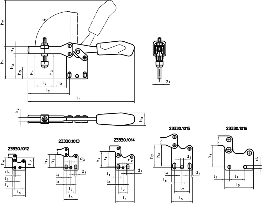 Cleme orizontale, cu talpă verticală | Mărimea nominală=5 / oțel | 23330.1015