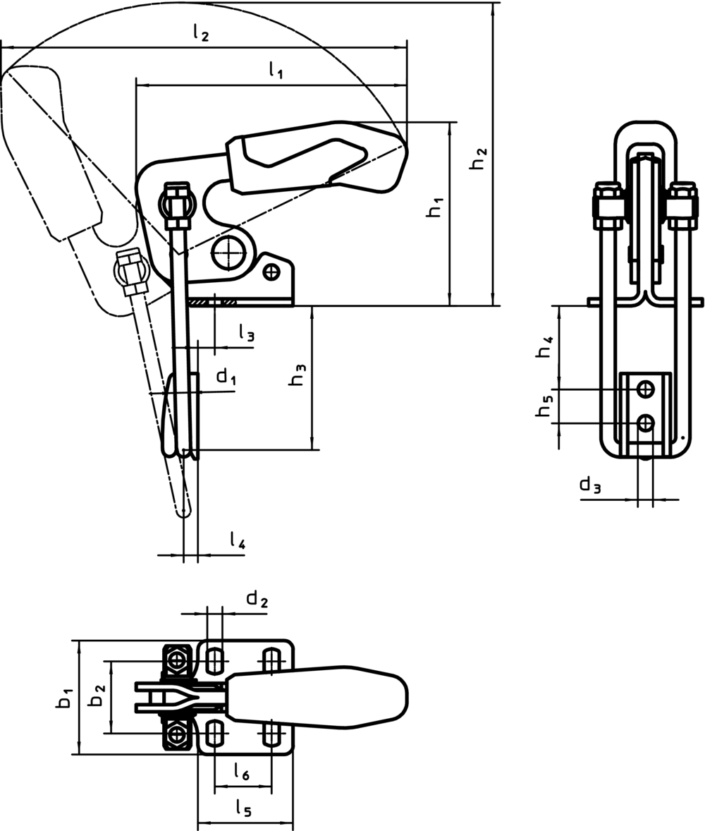 Cleme tip cârlig, verticală, cu talpă orizontală | Mărimea nominală=5 / oțel | 23330.5005