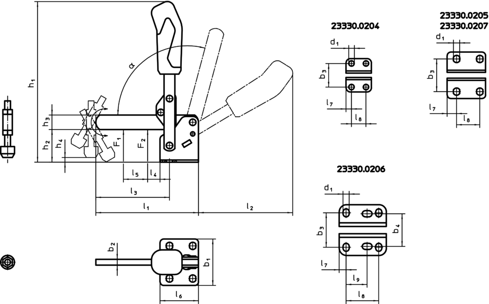 Cleme verticale, cu talpă orizontală și braț solid | Mărimea nominală=4 / oțel | 23330.0204