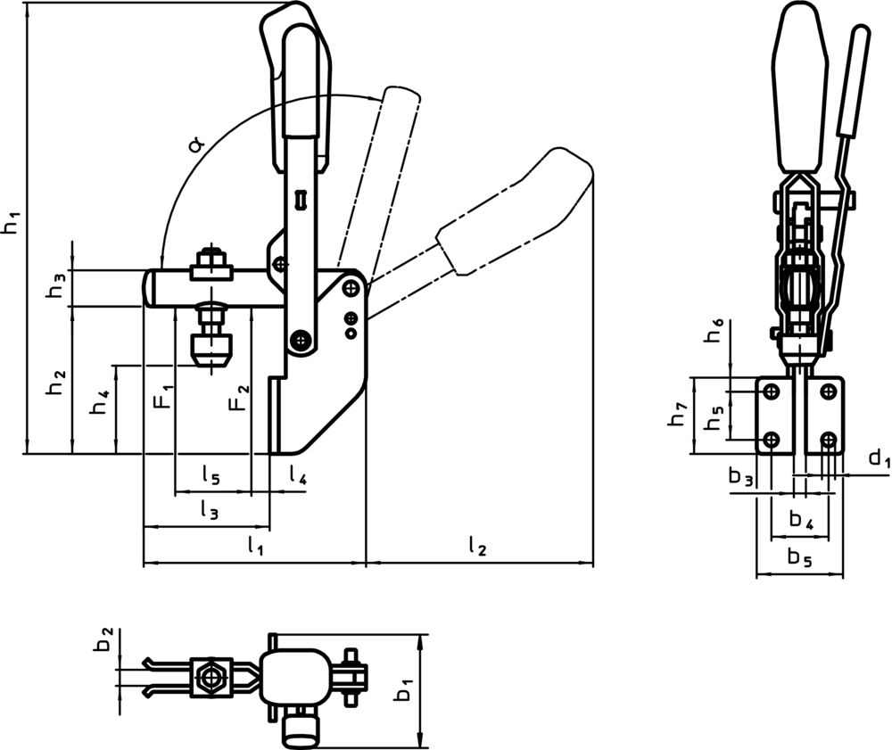 Cleme verticale, cu talpă unghiulară și siguranță | Mărimea nominală=5 / oțel | 23330.0625