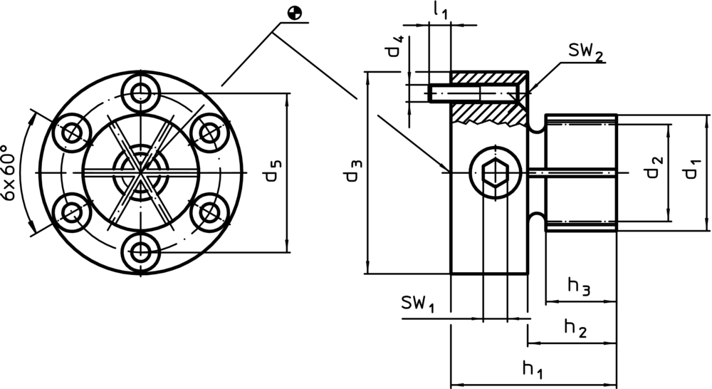 Mandrină de fixare, cu operare laterală | d1=28,7 mm | 23340.0125