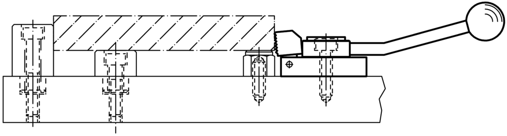 Elementul de prindere cu acţiune rapidă împinge simultan pisele de lucru înspre opritoarele fixate şi spre plăcile de susţinere. Tipul îngust al construcţiei permite prelucrarea integrală a feţei. Împreună cu opritoarele cilindirce EH 23280. se poate renunţ la sistemele de fixare speciale.