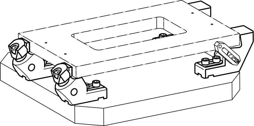 Piesa este poziţionată şi apoi fixată pe o placă de bază precisă. Mai multe repere din gama Halder pot fi montate în găurile suporturilor pentru crearea de dispozitive personalizate.