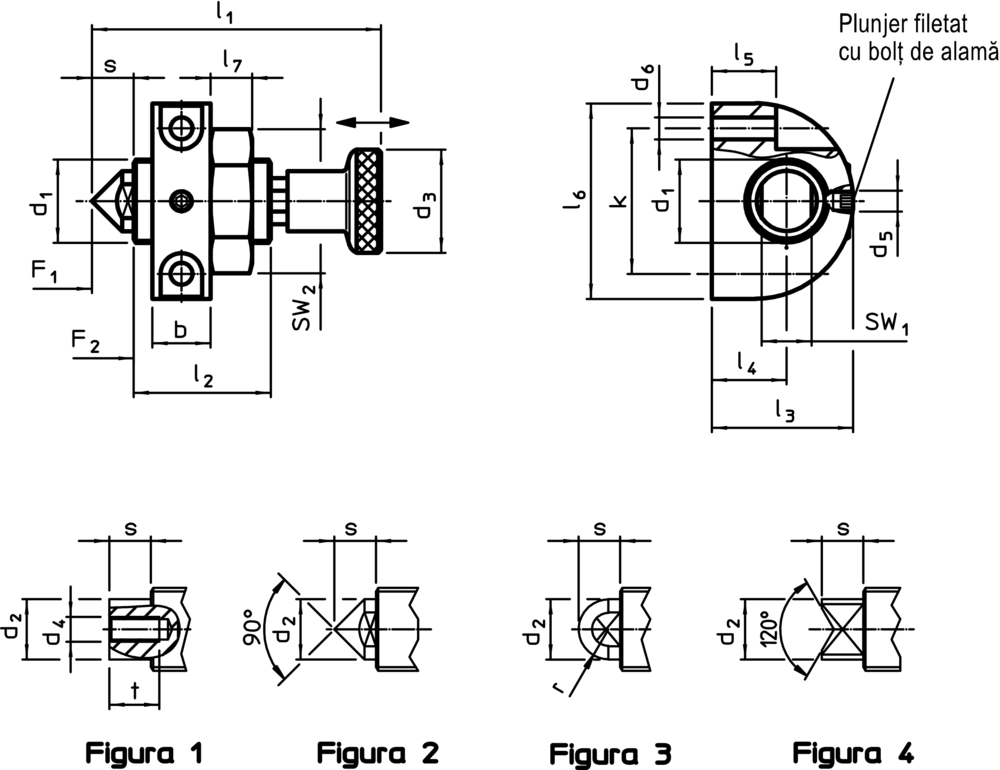 La varianta cu ştift filetat se pot monta ştifturi cu forme speciale.