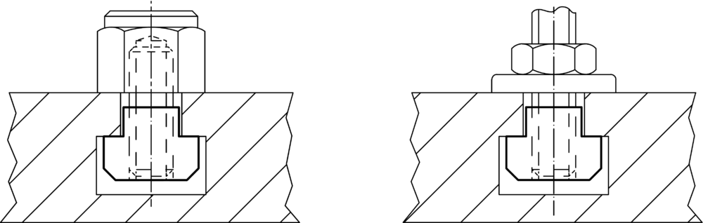These nuts for T-slots (slot nuts) are manufactured according to DIN 508. The range is extended by other dimensions that are not included in DIN.