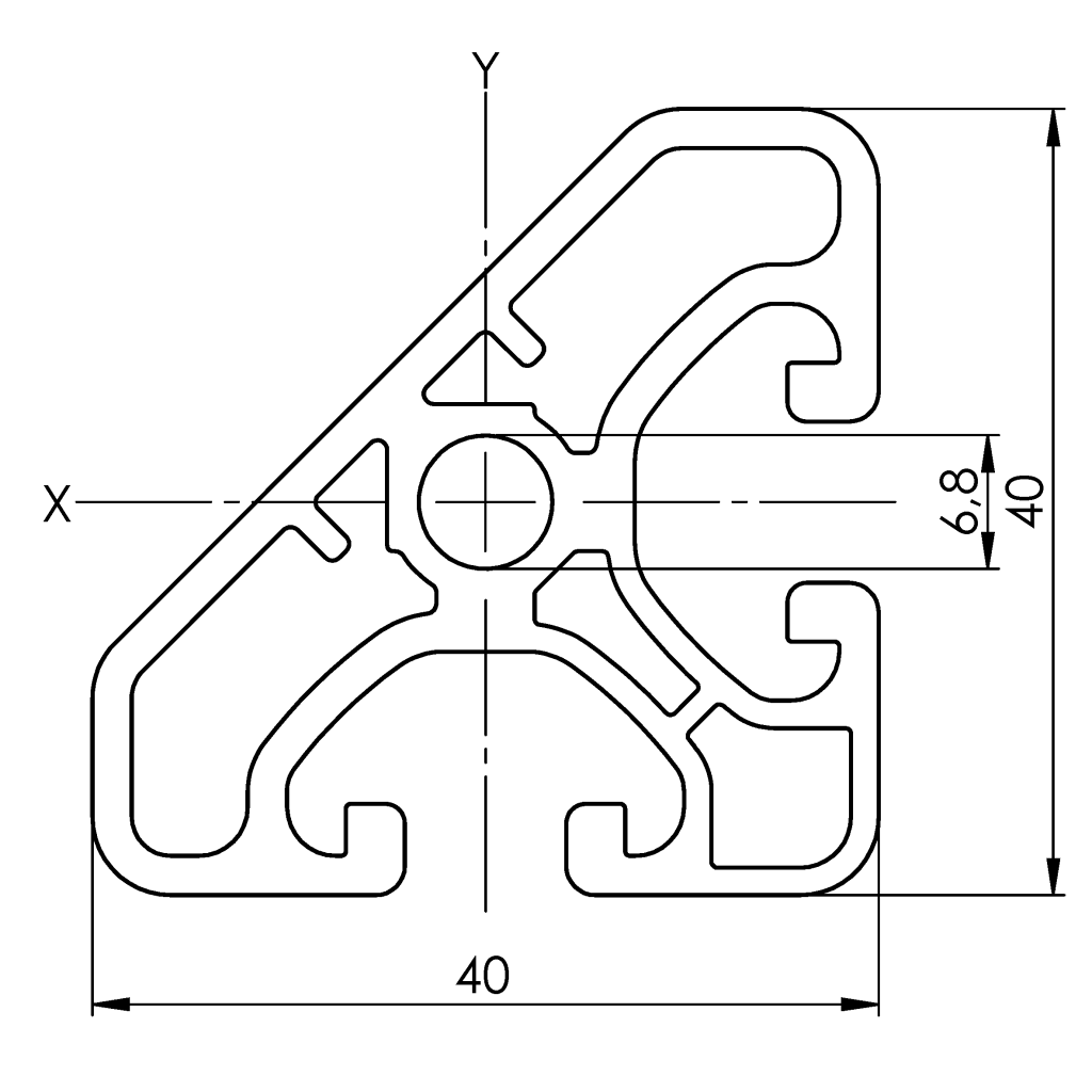 Profil aluminiu compatibil ITEM 40x40x45° Sistem 40 ECO canal 8, Profil tesit 45°
