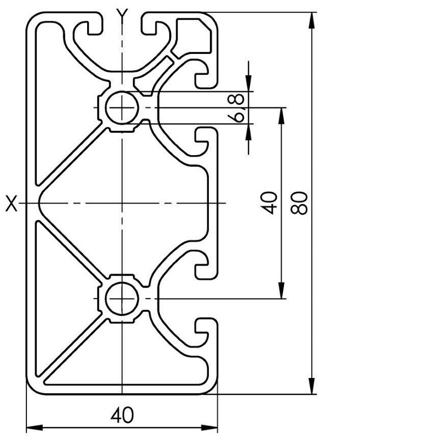 Profil aluminiu compatibil ITEM 40x80 Sistem 40 ECO Canal 8, 1 latura inchisa