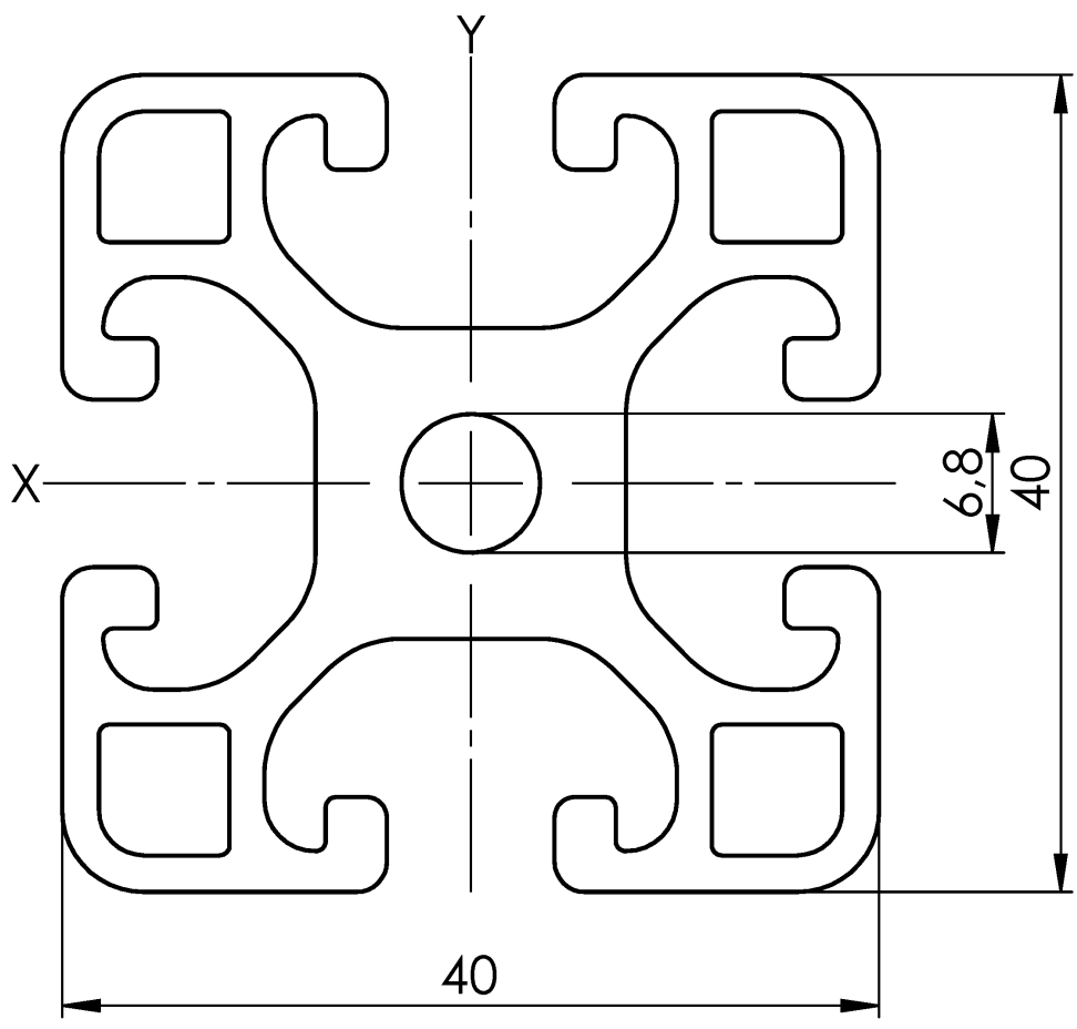 Profil aluminiu compatibil ITEM 40x40 Sistem 40 LIGHT canal 8, Lungime 3000mm