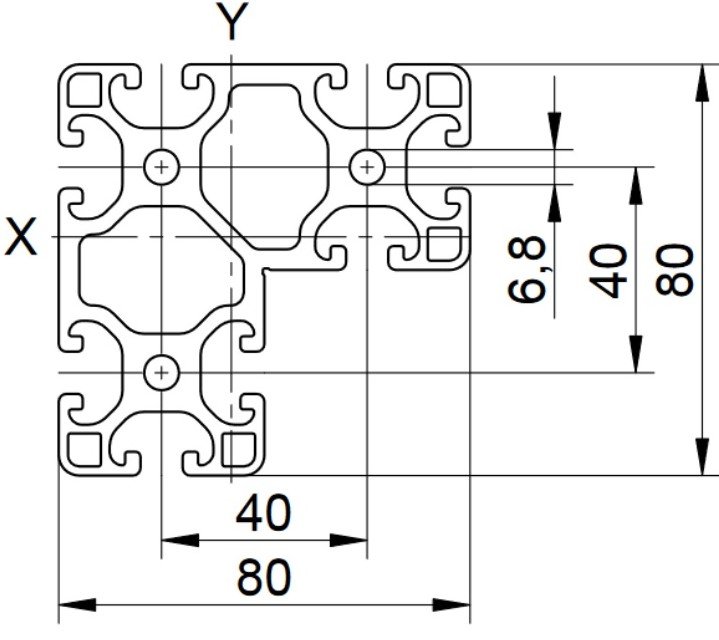 Profil aluminiu compatibil ITEM 40x40x80 Sistem 40 LIGHT Canal 8