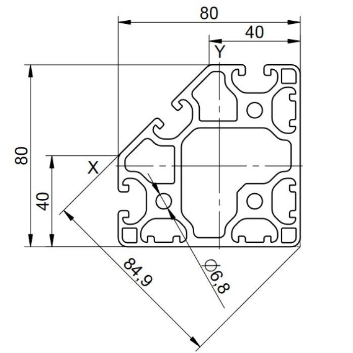 Profil aluminiu compatibil ITEM 80x80 Sistem 40 LIGHT, Canal 8, 1 Latura inchisa, tesit 45°