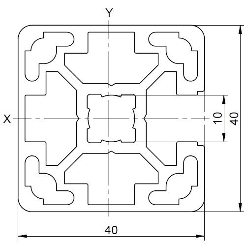 Profil aluminiu standard industrial 40x40 Seria 2, Sistem 40 LIGHT canal 10, 3 laturi inchise