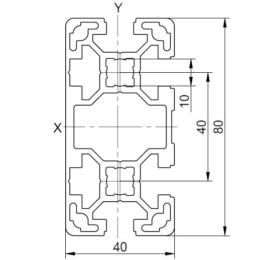 Profil aluminiu standard industrial 40x80 Serie 2, Sistem 40 LIGHT Canal 10, 1 latura inchisa