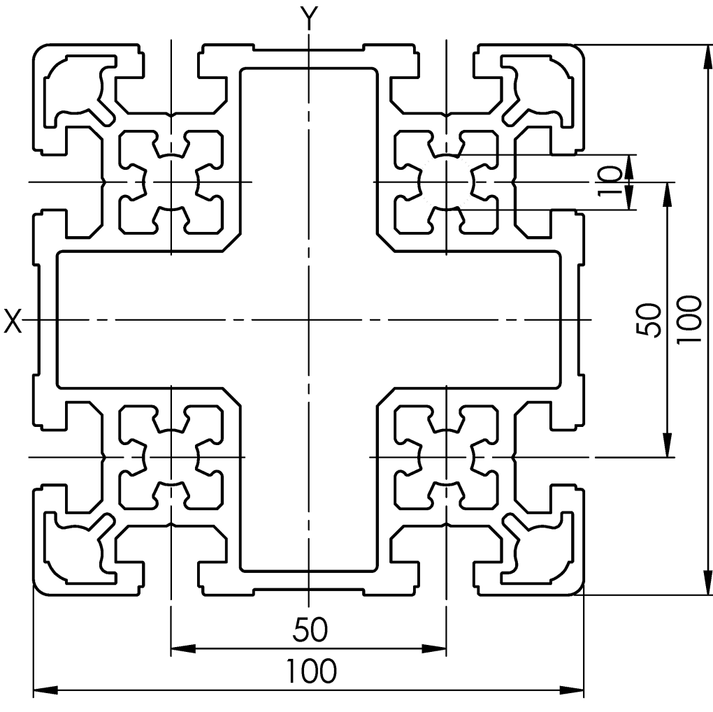 Profil aluminiu standard industrial 100x100 Seria 2, Sistem 50 LIGHT Canal 10