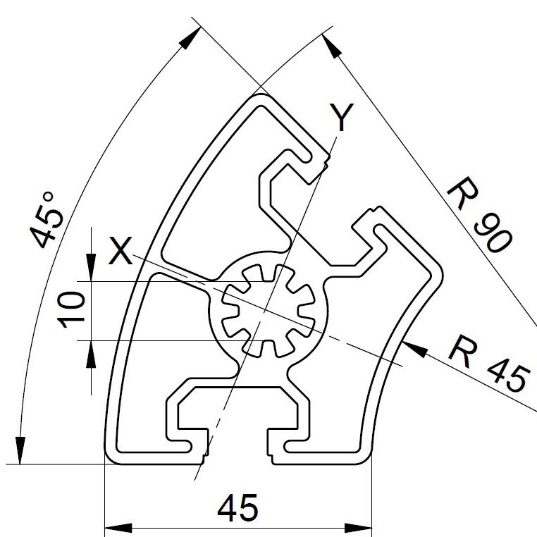Profil aluminiu 45R45 Sistem 45 canal 10, Segment 45° B10 45R45