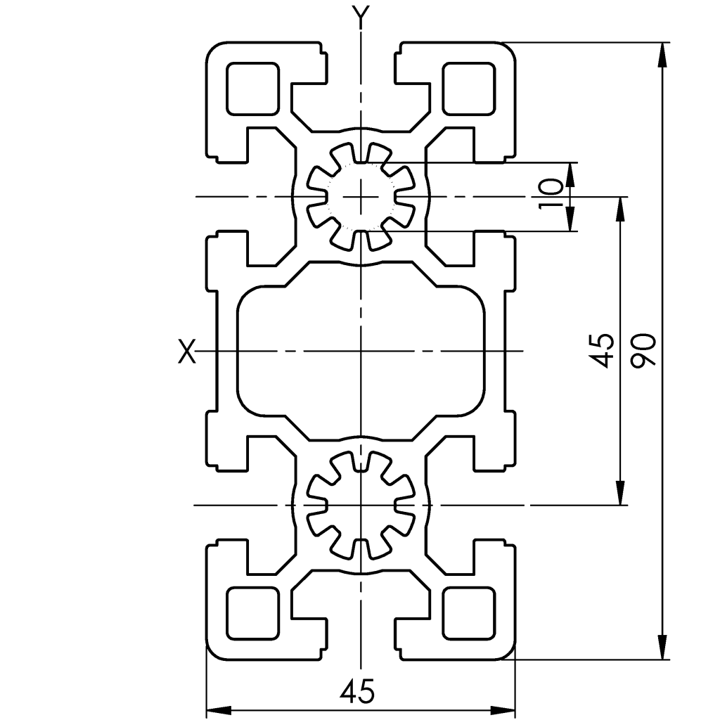 Profil aluminiu standard industrial 45x90 Seria 2, Sistem 45 Canal 10