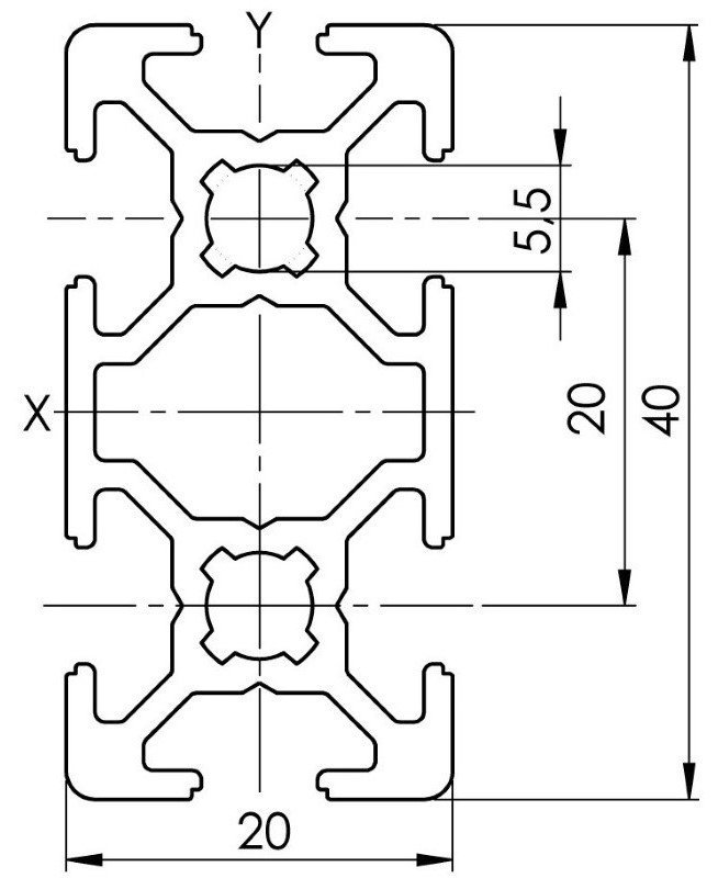 Profil aluminiu 20x40 Sistem 20 Canal 6