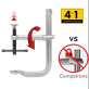 Clemele F 4-în-1 sunt cele mai versatile cleme cu braț glisant de pe piață. Toate clemele F Strong Hand Tools sunt fabricate din oțel de înaltă calitate tratat termic și placate cu nichel/crom pentru rezistență și durabilitate.